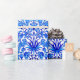 Papier enveloppant dans un vintage motif William Morris de jacinthes, de tulipes et d'feuilles, dans des tons cobalt et bleu céramique, accentué par la marine sombre, sur un arrière - plan blanc