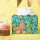 Papier à envelopper dans un William Morris, Art Nouveau, imprimé textile d'iris et de feuilles, numériquement rehaussé et coloré, en orange, vert citron et eau douce, sur un profond arrière - plan turquoise