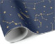 Wrapping Paper Winter Constellations: A night sky pattern with stars connected by thin gold lines (zodiac/winter sky).