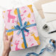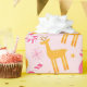 Papier Cadeau wrapping paper with pink Christmas reindeer.
