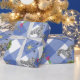 Papier Cadeau Zèbres de Noël sur Plaid Bleu