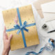 Papier d'enveloppement cadeau Pois d'or métallique brillant.