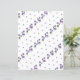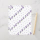 Papier de scrapbook violettes et rubans dans un design diagonal. Jolies fleurs violettes dispersées en rangées ordonnées.