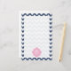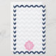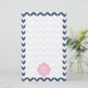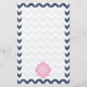 Papier de papeterie comportant une conception bleue de chevron d'ikat. Personnalisez avec votre monogramme au-dessus de conception rose de quatrefoil.