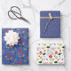 Feuilles de papier d'enveloppement fleur sauvage rouge et jaune bleu motif élégant.