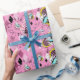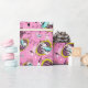le lapin blanc est tardif pendant une date importante sur ce papier d'emballage. Les lapins blancs dans des vestes d'aqua sautent par des cadres contre un arrière - plan rose, complets chaotiques et nombre-remplis avec des sabliers, des horloges, et des formes de diamant. Enveloppe de cadeau parfaite pour une Alice dans l'anniversaire orienté ou la douche du pays des merveilles.