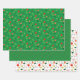 Feuilles de papier motif vert fleur sauvage rouge et jaune.