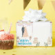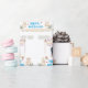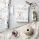 "Emballez vos cadeaux spéciaux avec une élégance intemporelle en utilisant ce papier d'emballage Joyeux Mariage qui présente un fond blanc épuré et un design d'art de mariage romantique avec une mariée et un marié joyeux sous une élégante arche de mariage, entourés de belles fleurs et de gâteaux de célébration.