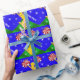 Papier mignon superbe d'emballage cadeau de majorettes d'anniversaire ou de Noël avec son NOM ou VOTRE TEXTE ou suppression. Poms bleus, verts, jaunes et rouges et blancs lumineux de pom de pom-pom girl. Idées gaies lumineuses de Noël de pom-pom girl pour les filles qui aiment cheerleading. Que diriez-vous d'envelopper son cadeau d'anniversaire de pom-pom girl en ce papier d'emballage cheerleading mignon superbe.