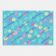 Customisez votre papier d'emballage Happy Birthday avec l'âge exact du destinataire. Arrière - plan coloré par © Cathy Thompson. Couleurs bleu, vert menthe, jaune et rose.