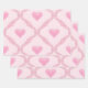 Voici un ensemble de trois feuilles de coeurs roses enveloppant du papier. Le design a été créé avec de l'art de l'intelligence artificielle. Le design présente des coeurs roses sur un arrière - plan rose doux. L'arrière du papier contient des lignes directrices pour l'emballage soigné. La conception du papier d'emballage est très jolie.