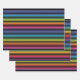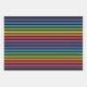 Bandes horizontales en noir et arc-en-ciel, un papier d'emballage cool design idéal pour anniversaire, vacances, ou cadeaux "juste parce que".