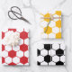 Rouge, Jaune, Noir et blanc motif de balle de football papier d'emballage cadeau pour anniversaires, anniversaires et toutes ces occasions spéciales de cadeaux