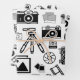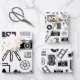 B&W motif design avec accessoires de photographie illustrations incluant caméras, films et trépieds. La meilleure façon d'envelopper un cadeau spécial pour un amoureux de la photographie !