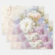 Un très beau papier d'emballage avec des dahlias blancs et des accents de pourpre et de bleu pour un mariage ou une douche.