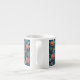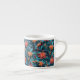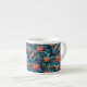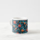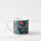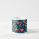 Une belle tasse Espresso avec un motif floral en papier transparent contre un arrière - plan bleu.