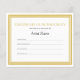 Bordure d'or personnalisée Certificat d'authenticité pour l'illustration originale imprimée sur papier.
