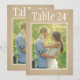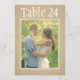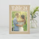 Des cartes de table de mariage personnalisées élégantes peuvent être personnalisées avec une photo de fiançailles de la mariée et du marié. Le design comporte un texte de numéro de table blanc sur un fond de papier kraft brun rustique. Pour personnaliser : tapez le numéro de table, cliquez sur "changer" à côté de la photo par défaut pour télécharger votre propre photo, et ajoutez cette carte de numéro de table individuelle à votre panier. Répétez l'opération pour tous les numéros de table dont vous avez besoin.