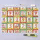 Cet adorable papier de tissu de Noël comprend 1 perdrix dans un poirier, 2 tourterelles, 3 poules françaises, 4 oiseaux qui appellent, 5 anneaux dorés, 6 oies qui pondent, 7 cygnes qui nagent, 8 domestiques qui trayent, 9 dames qui dansent, 10 seigneurs qui sautent, 11 pipers qui battent chacun dans un cadre décoratif. Parfait pour ces cadeaux de vacances.