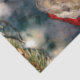 A sweet watercolor style illustration of Mr and Mrs Claus on a tissue paper framed by pine cones, pine branches and illuminated Christmas lights.