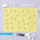 Motif d'abeille au miel illustré mignon sur papier de tissu jaune pâle avec ruban à côté pour ajouter votre personnalisation. Une façon élégante de promouvoir une marque ou un site d'affaires ou de marquer une fête.