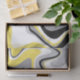 Motif abstrait noir, gris et jaune.