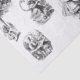 Des personnages fantasques du livre pour enfants Alice in Wonderland, Alice, the White Rabbit, Mad Hatter, Caterpillar et Cheshire Cat, apparaissent en noir et blanc sur ce papier de tissu à thème de la littérature britannique pour l'emballage de cadeaux ou le découpage et les arts et l'artisanat.