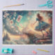 Alice ascends toward a fairytale castle in this enchanting watercolor design, surrounded by floating playing cards. The whimsical staircase winds through a surreal sky of swirling brushstrokes and soft colors. Great for dreamy DIY projects and creative storybook crafts. The movement and fantasy elements make this design stand out beautifully. A lovely nod to imagination, adventure, and the art of getting lost in wonder. Explore more whimsical fantasy designs in my Alice In Wonderland tissue paper collection!
