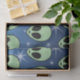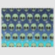 Un motif alien vert avec de grands yeux noirs ovales et une petite fente noire pour une bouche. L'arrière - plan est un dégradé foncé à bleu clair, parsemé d'étoiles blanches.