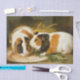 Ce dessin présente une peinture de l'artiste anglais James Ward (1769-1859). Il représente deux cobayes qui se nourrissent. L'un d'eux mange à partir d'une feuille de laitue, tandis que l'autre cobaye semble manger une sorte de purée, et il y a aussi un petit segment de pomme sur l'assiette qu'ils partagent. Leur literie de foin se voit derrière les deux animaux pendant qu'ils se nourrissent. L'oeuvre originale a été peinte par James Ward en 1843.