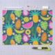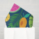 Il s'agit de mignons fruits tropicaux colorés et éclatants avec ananas, papaye, fruit du dragon, mangue, banane, pastèque et citron avec des feuilles tropicaux sur arrière - plan foncé