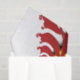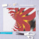 Un design artistique abstrait d'une créature mythique évoquant un anémone marin, en rouge, jaune, blanc et or.