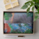 Oscar-Claude Monet (14 novembre 1840 - 5 décembre 1926) était un peintre français, un fondateur de la peinture impressionniste française et le praticien le plus constant et le plus prolifique de la philosophie du mouvement d'exprimer ses perceptions avant la nature, surtout en ce qui concerne la peinture en plein air paysage. Le terme "impressionnisme" est dérivé du titre de sa peinture Impression, soleil levant (Impression, Sunrise), exposée en 1874 dans la première des expositions indépendantes montées par Monet et ses associés comme alternative au Salon de Paris. L'ambition de Monet de documenter la campagne française l'a conduit à adopter une méthode de peinture de la même scène à plusieurs reprises afin de capturer le changement de lumière et le passage des saisons. À partir de 1883, Monet vit à Giverny, où il acquiert une maison et une propriété et entreprend un vaste projet paysager qui comprend des étangs de nénuphars qui deviendront les sujets de ses oeuvres les plus connues. Il commence à peindre les nénuphars en 1899, d'abord en vue verticale avec un pont japonais comme élément central, puis dans la série de peintures à grande échelle qui devait l'occuper continuellement pendant les 20 années suivantes de sa vie. Citation : Wikipedia