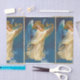 Peinture vintage d'un ange à l'expression angélique, belle robe flottante et harpe dorée dans le bleu et le beige.
