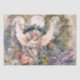 Aquarelle rose et violet illustration d'un ange avec des fleurs devant des arches de jardin