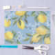 Élégants et doux citrons d'aquarelle et papier de tissus à fleurs bleues. Doté d'un bel élégant arrière - plan bleu ardoise poussiéreux avec des fleurs d'aquarelle et des citrons jaunes sucrés. Disponible en 3 dimensions. Idéal pour tous les cadeaux à thème citron, douches nuptiales à pression principale et divers projets artisanaux!