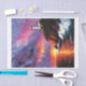 Papier Mousseline Aquarelle de la mer orageuse avec phare au coucher