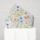 Ce papier de soie présente un motif de fleurs sauvages aquarellées dans des nuances de vert, jaune, orange et bleu.