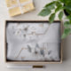 Papier Mousseline Aquarelle Fleurs blanches Cadre doré Argent Turquo