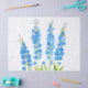 Papier Mousseline Aquarelle florale de delphinium bleu élégant rusti