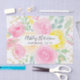 Jolie aquarelle florale jaune pailleté et joliment rosée avec confetti de parties scintillant dorée , ajoutez votre monogramme.