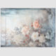 Papier Mousseline Aquarelle vert pastel pêche bleu fleurs blanches