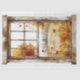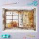 Papier Mousseline Arbres d'automne et Fleurs sauvages via la fenêtre