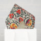 Design élégant, classique, lumineux sur parchemin avec motifs floraux antiques et une pierre rouge brillante en 3D en rubis élaborée à partir de la miniature d'ange oriental 1540 par Hosein Naggash. avec des effets de parchemin marron vieilli.