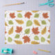 Papier de tissu orange, vert et jaune présentant un motif feuille.