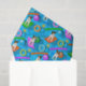 Ce papier-mouchoir coloré pour les amateurs de Parson / Jack Russell Terrier est doté d'un motif de quatre JRT / PRT différents avec des marques variées de tête/corps brun et noir et d'une charmante inclinaison de tête de chien debout sur leurs matelas flottants colorés bleu, rose, orange et citron vert avec une balle de tennis dans une piscine bleu clair, entourée de nouilles et boules jaunes jouets à mâchoire flottante en forme de forme - Parson / Jack Russell pool party © katz_d_zynes 2021