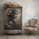 Transformez votre projet avec Autumn Enchantress Floral Gold Blue Decoupage par Decoupage_Boutique. Un portrait fantaisiste d'une jeune femme couronnée en fleurs d'automne et botaniques dorées apporte élégance, mystère et charme d'imaginaire à toute pièce. Idéal pour un décor romantique, conte de fées ou à thème floral. Parfait pour : Bureaux de secrétaire d'antiquité tables de vanité victorienne boîtes de bijoux Vintages Armoires Tables latérales Couleurs Jumelles : Marine + Crème d'or antique + Ambre Sepia + Pearl Midnight + Bronze Storm Grey + Gilt Design Impact : Composition portrait dramatique Botaniques dorées Ethérées Moody chiaroscuro éclairage style Renaissance éléments de fusion asiatique contemporaine