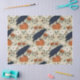 A sleek black crow perches gracefully atop a warm orange pumpkin, keeping a quiet watch over the harvest. Surrounded by a bloom of daisies and deep rust-colored poppies, the scene blends mystery and beauty, embodying the changing of seasons. The muted golden backdrop enhances the contrast between the dark bird and vibrant autumn tones, creating a balance of elegance and intrigue. This artwork evokes both the quiet magic of fall and the symbolic wisdom of the crow.