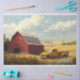 Papier de tissu découpage avec grange rouge vintage et camion jaune classique, idéal pour ajouter une touche rustique et nostalgique à vos projets.