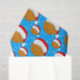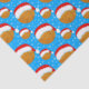 Ce papier de tissu de Noël présente du basket-ball en casquette Père Noël avec des flocons de neige qui tourbillonnent autour d'un arrière - plan bleu Noël.